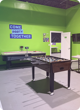 Your party deserves a dedicated Party HQ — your group’s home base between games. It’s where players take breaks, eat cake, open gifts, and get ready for the next round of action. No juggling space, no chaos — just a place to relax, recharge, and celebrate.