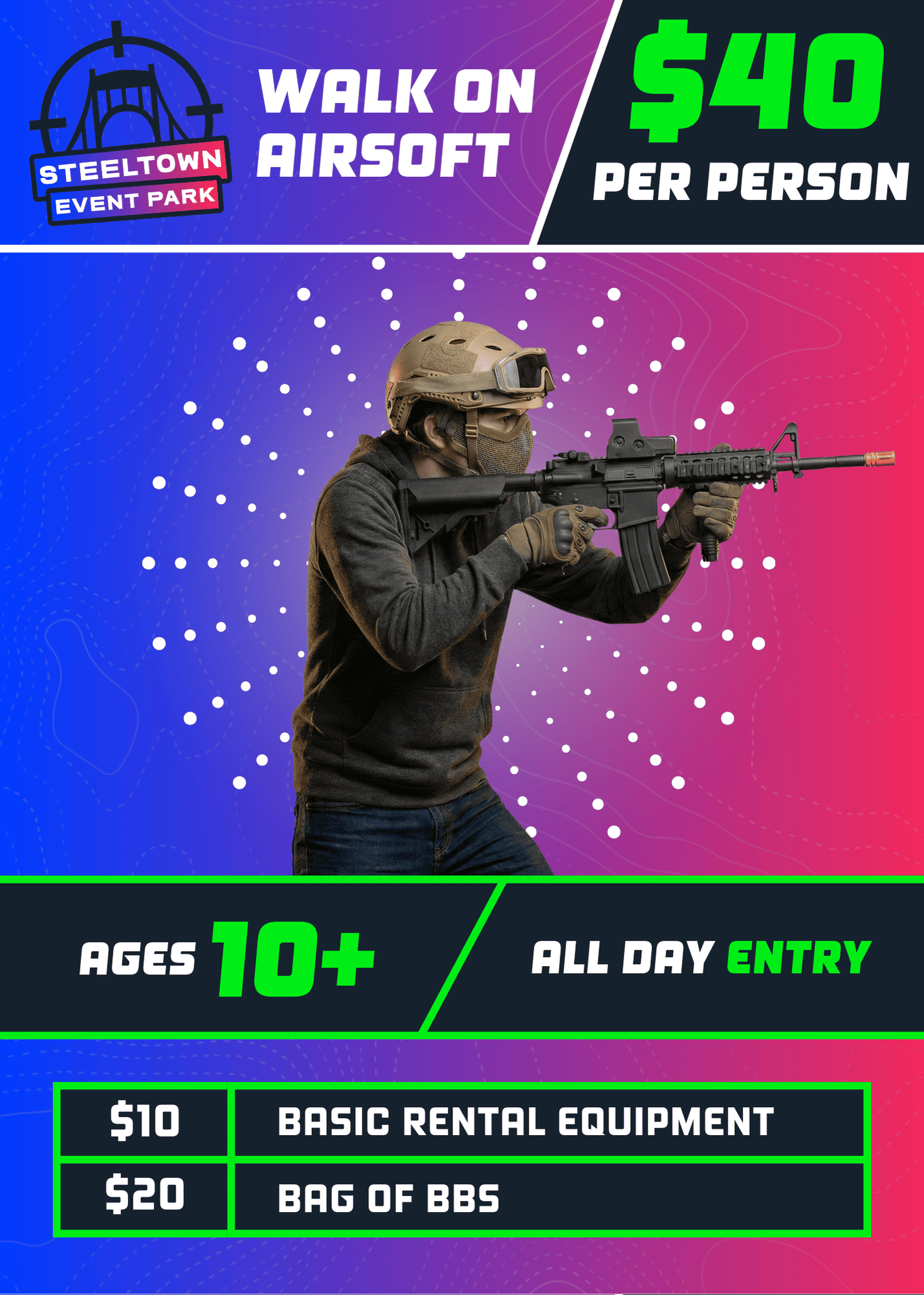 Includes 2 slices of pizza, bottle of water, and Steeltown T-Shirt
